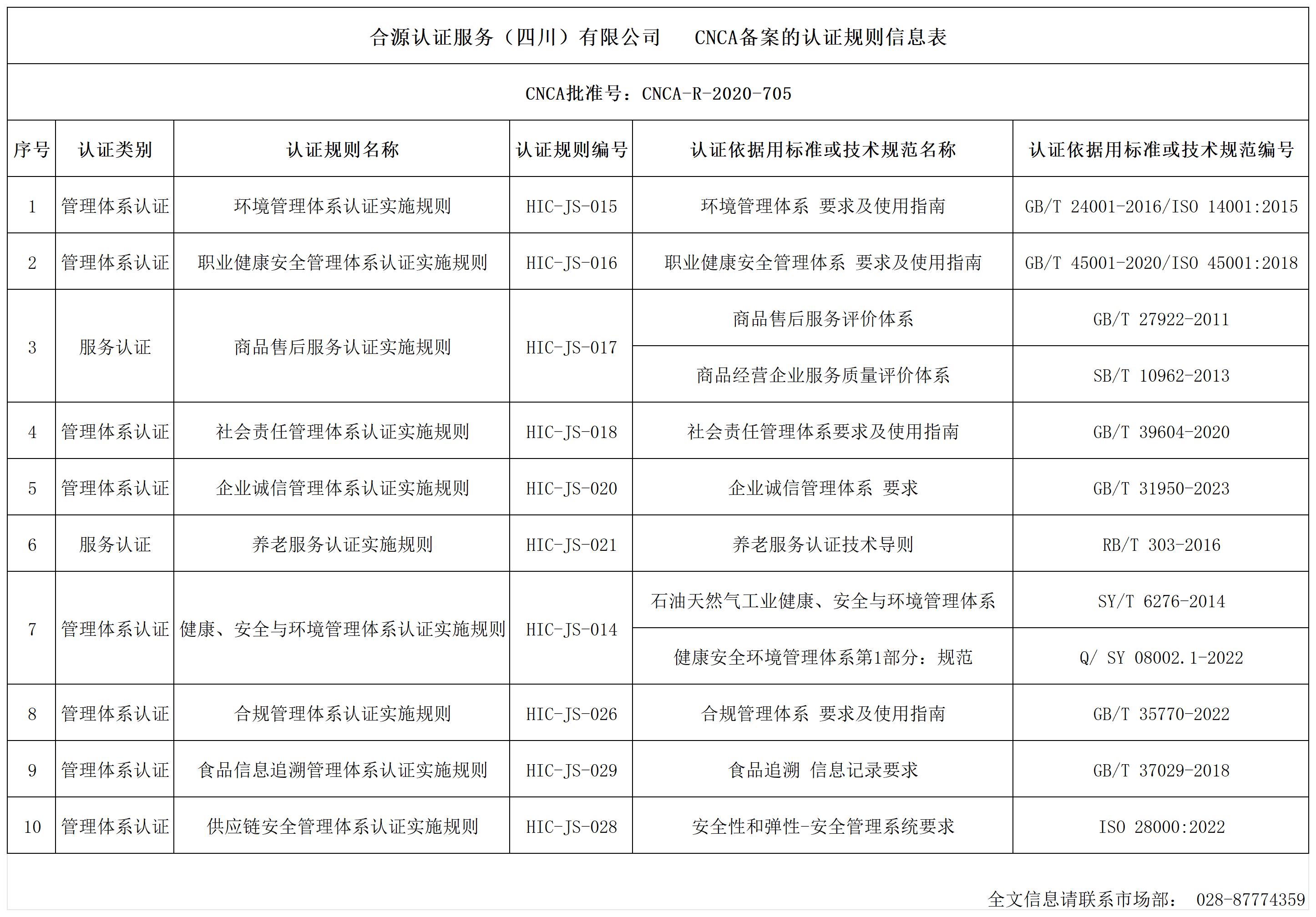CNCA备案的认证规则信息表